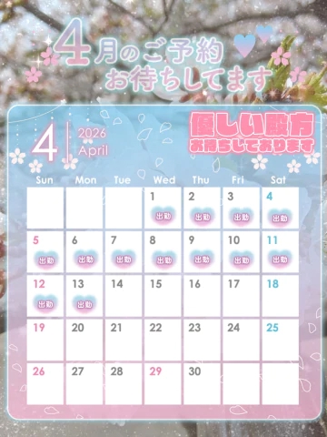 出勤予定🗓️ 2026/04/06 15:19:27 女の子とお店をフォローします いいね! 出勤予定になります詳しい受付時間はプロフで、確認宜しくお願いします 女の子とお店をフォローします いいね! この日記をXに投稿する